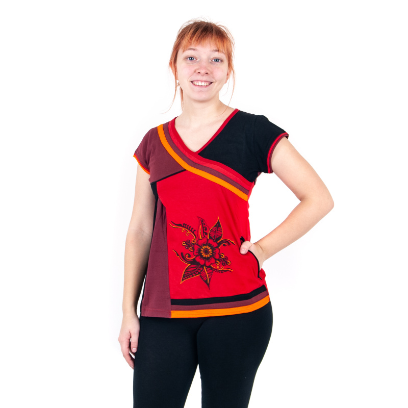 Red top with floral motif and small zipped pocket Joy 12, size XL