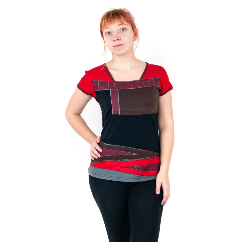 Unusual short-sleeved top Joy 14 in burgundy-black, size XL
