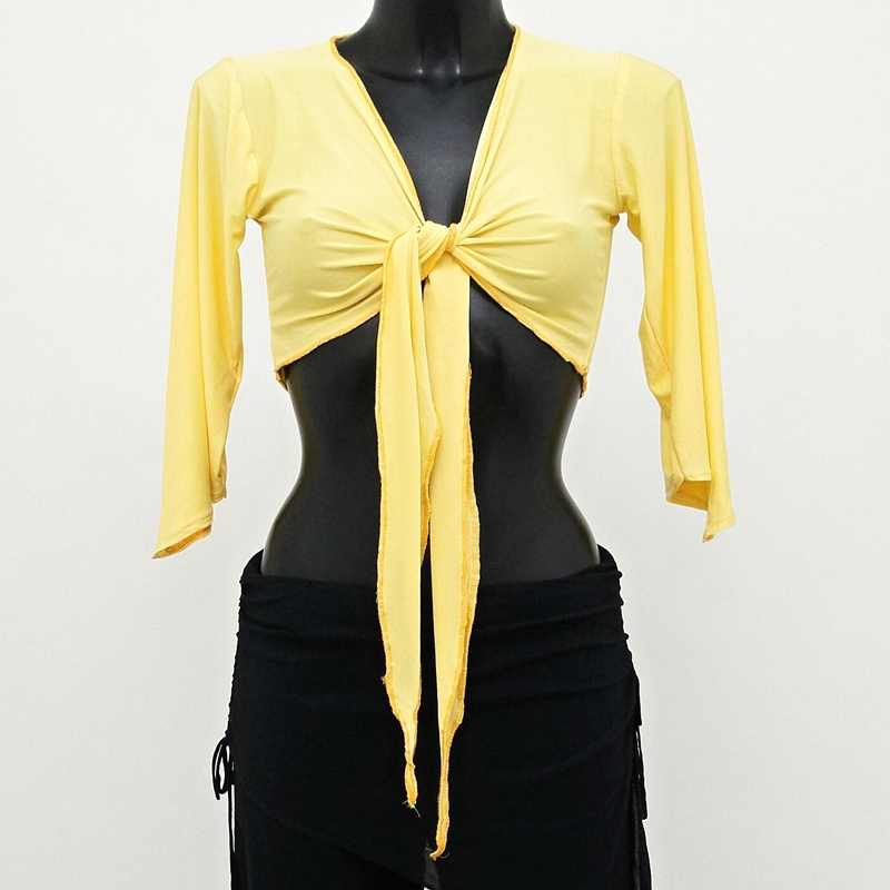 Kamas oriental dance top in flowing stretch knit. The top has 3/4 sleeves and a tie at the front.