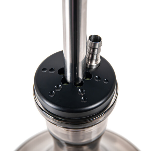 An unconventional integrated system of four purge valves is located at the heart of the hookah, which is complemented by a stainless steel hose port. You can easily slide the hose onto the steel port, with no need for grommets. There is also an easily removable diffuser at the end of the steel downstem.