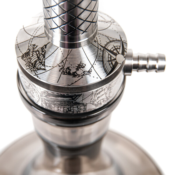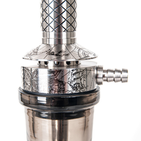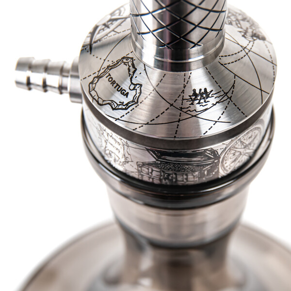 The stem of the hookah catches the eye at first glance with its decorative pirate motif, but also with the unique design of the purge valve. Additionaly, the package includes two downstems of different lengths, allowing you to use the hookah not only with the original base size but also with a smaller base, turning the Fancy Black hookah into a truly "fancy" travel model.