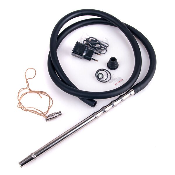 There is also an easily removable diffuser at the end of the steel downstem. Also included is a charging cable and a lighting control control to turn it on and off. Just hold the control for a few seconds on the logo on the hookah stem.