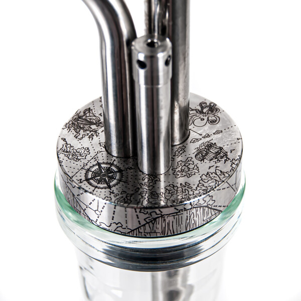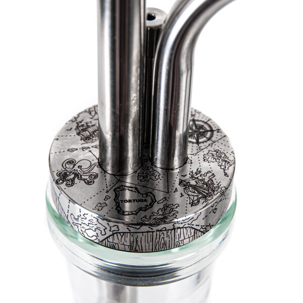 The Tortuga Zodiac Hookah revels in unconventional design. The unusually long and curved hose port and the heart of the hookah decorated with pirate motifs are the most distinctive features of this model.