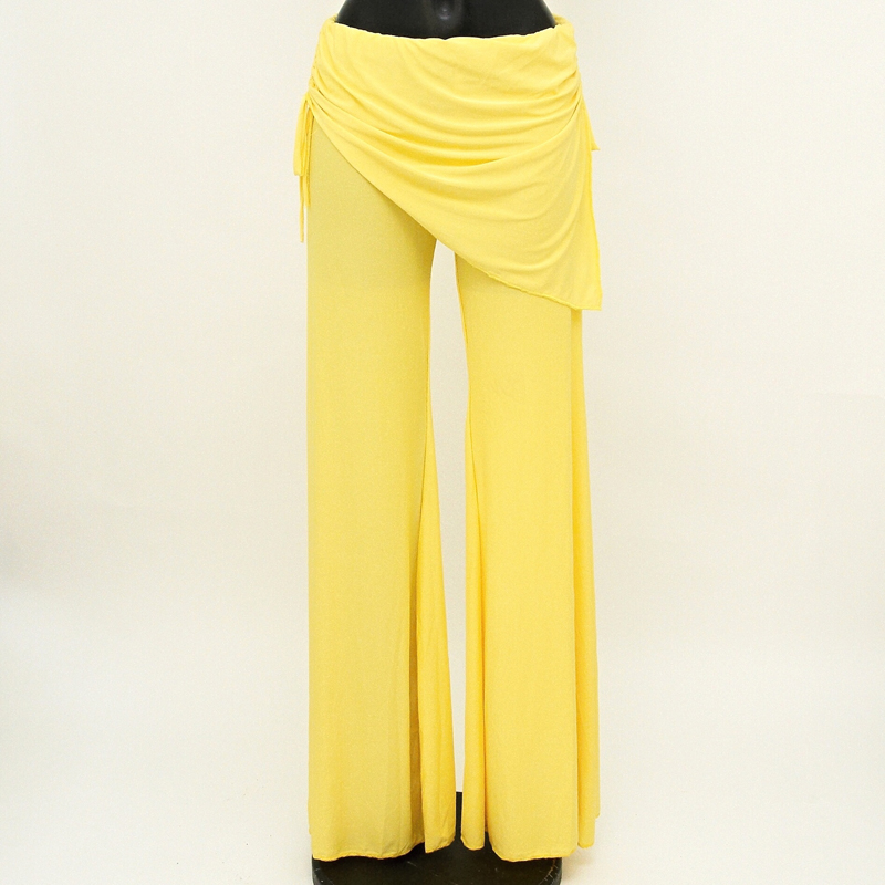 Solid colour oriental dance trousers Kartek, with small skirt and bell legs, size XL, yellow