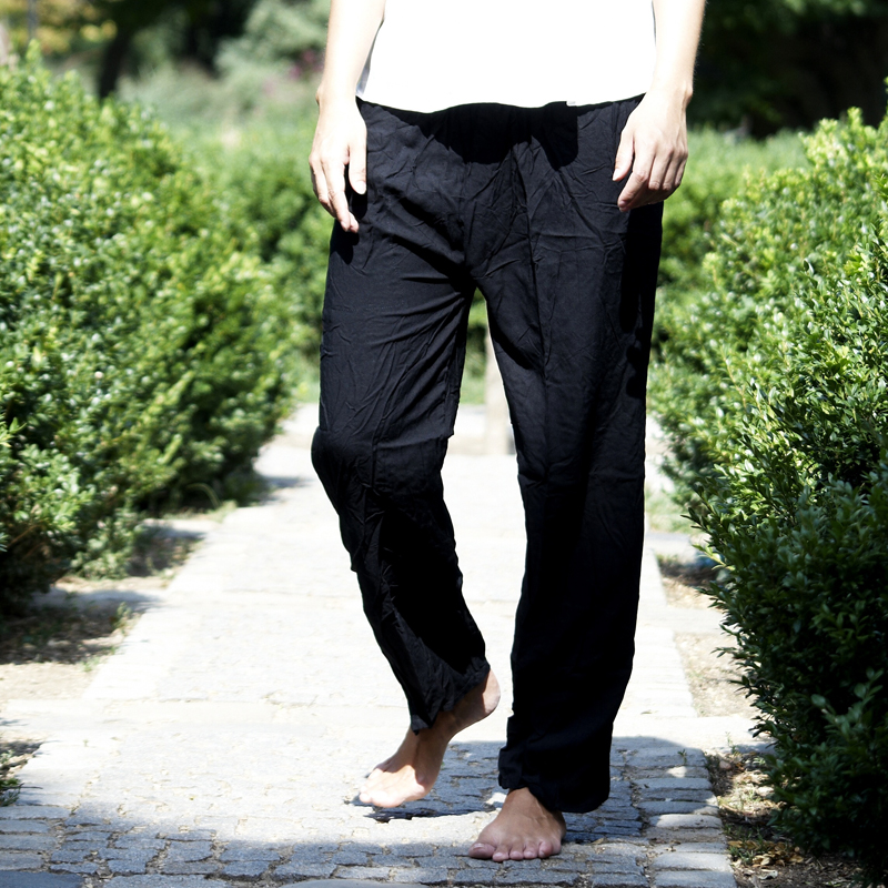 Yoga pants hand sewn with love on the Indonesian island of Bali. The pants have an elasticated waistband, making them even more comfortable to wear.