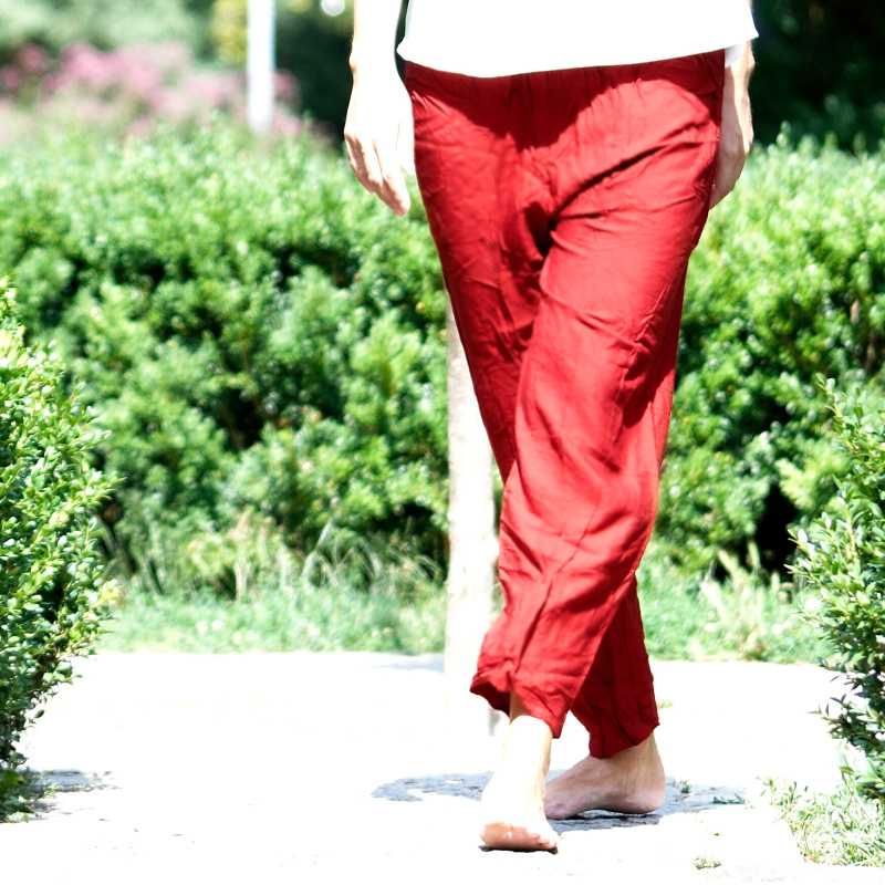 Yoga pants hand sewn with love on the Indonesian island of Bali. The pants have an elasticated waistband, making them even more comfortable to wear.