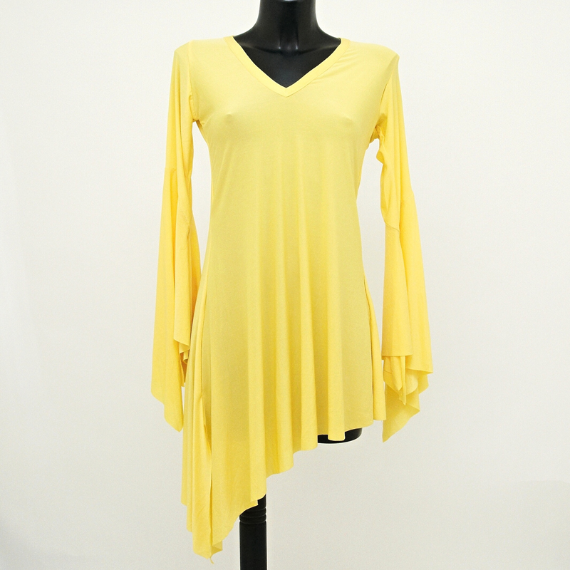 Solid colour asymmetrically cut tunic for oriental dance Amunet, size XL, colour yellow