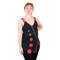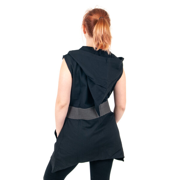 Women's tunic in "A" shape with tips that exceed the length of the tunic by 15cm. It has a zipper closure and a V-shaped hood.