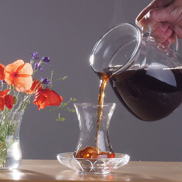 The 125 ml Tuareg Turkish tea glass with a saucer is best used when serving Arabic drinks such as Rize and Tuareg teas or the traditional creamy Salep. However, it can serve its functions perfectly in many other hot and cold beverages as well.