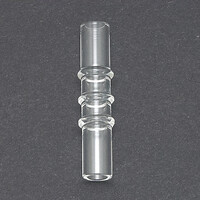 1. - Slide one sealing ring onto the glass mouthpiece, between the two outer glass rings. Firmly pull the open end of the balloon (the open end must not be twisted), put on the second sealing ring and pull it down about 2.5 cm from the edge. Once you have pulled the sealing ring, stretch the overhanging part of the balloon over the sealing ring so that you can see the opening inside the balloon.