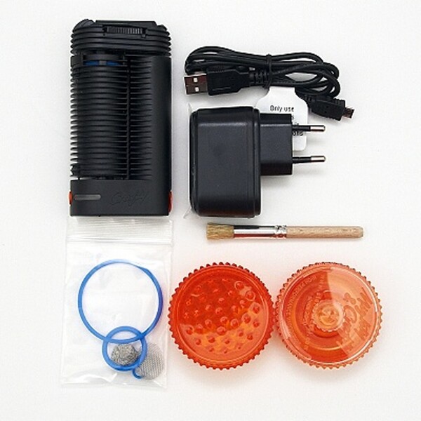 Package contents: Crafty Vaporizer, power adapter, plastic shredder, plastic box, spare strainers, spare seals, brush.