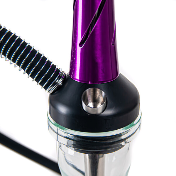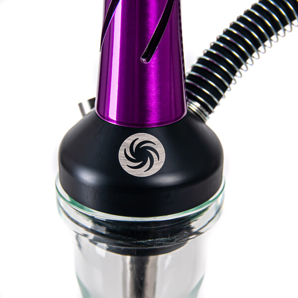 The maximally comfortable wide tray, the spectacular purge valve outlet on the stem of the hookah, and the adjustable diffuser are sure to win over many hookah fans. But the most interesting thing is undoubtedly the way the hose connects. The Vortex Hurricane uses a magnetic port. The same system is used in a mouthpiece holder.