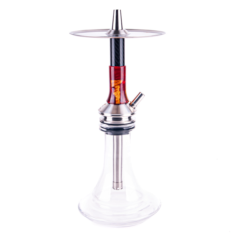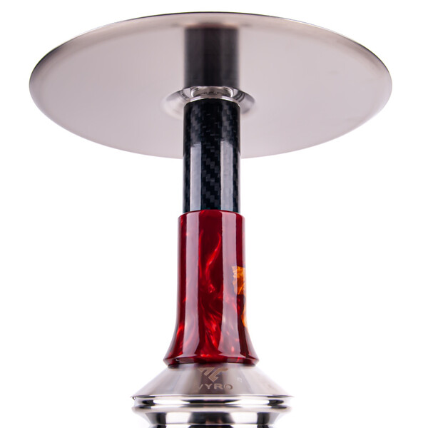 The VYRO Penta hookah will win over admirers with its many elaborate details. The most noticeable is the unconventionally shaped tray with an engraved logo, which is slightly raised in the center, preventing coals from rolling all the way to the center and burning the hookah grommet. At the same time, the raised part gives space at the bottom for the hookah's purge valve. The smoke thus flows out of the hookah stem from under the tray, reflecting downward from it.
