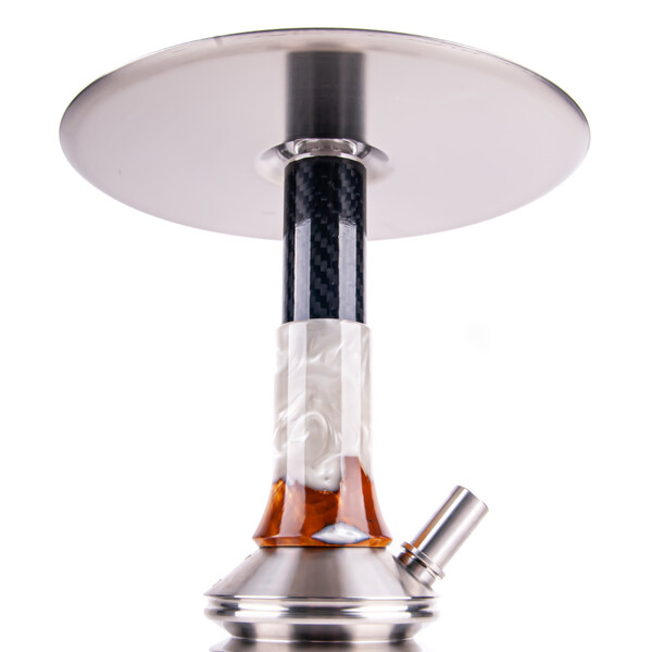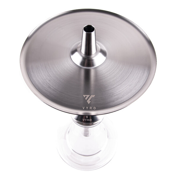 The VYRO Penta hookah will win over admirers with its many elaborate details. The most noticeable is the unconventionally shaped tray with an engraved logo, which is slightly raised in the center, preventing coals from rolling all the way to the center and burning the hookah grommet. At the same time, the raised part gives space at the bottom for the hookah's purge valve. The smoke thus flows out of the hookah stem from under the tray, reflecting downward from it.