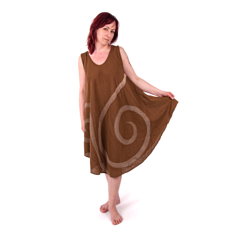 The Spirals dress in brown color sewn in Thailand has many advantages: