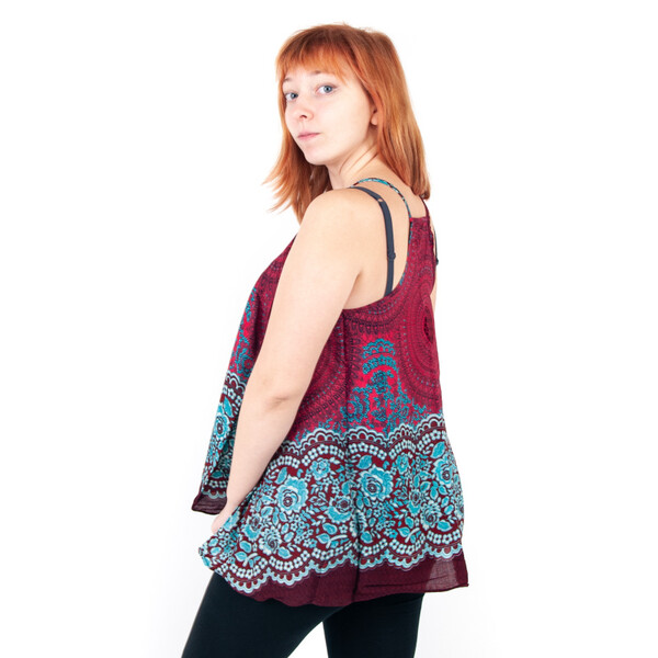 Enjoy the summer comfortably. With the lightweight Honeycomb Mandala halter top and oriental motif you will feel absolutely great.
