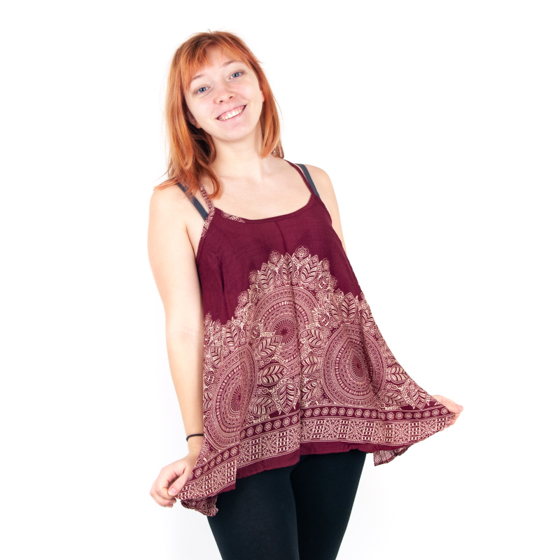 Enjoy the summer comfortably. With the lightweight Leaf Mandala halter top and oriental motif you will feel absolutely great.