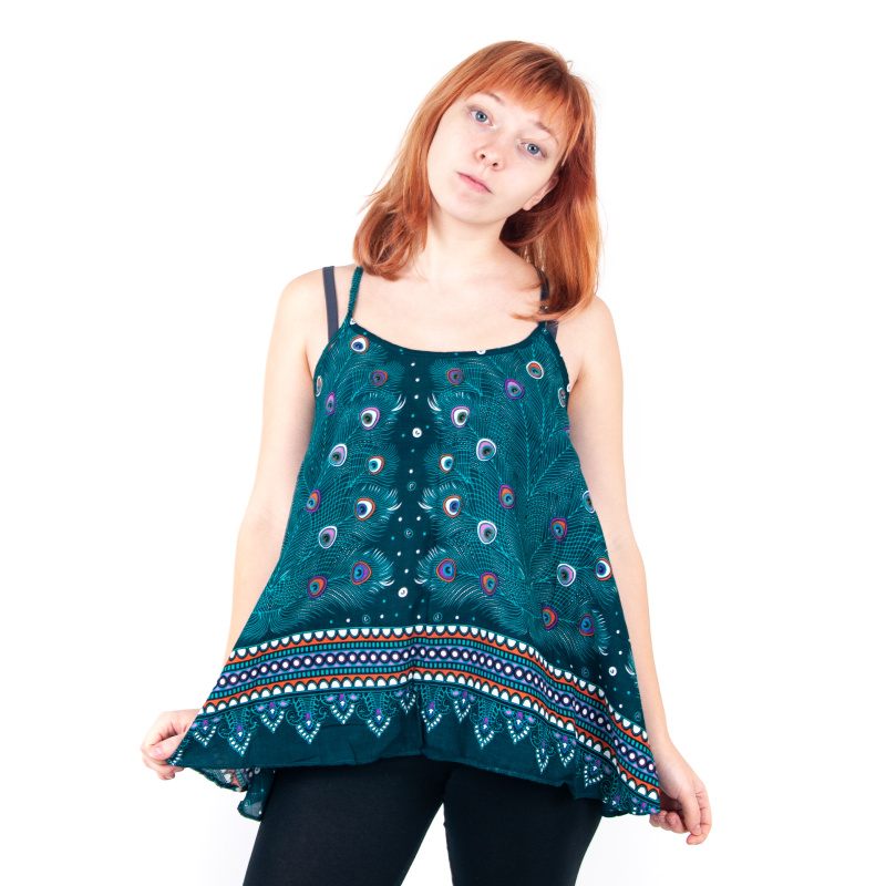 Enjoy the summer comfortably. With the lightweight Peacock Feathers strappy top and oriental motif you will feel absolutely great.