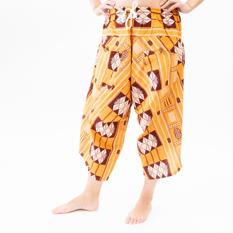 What the seamstresses reduced in length, they added in width. The three-quarter wide trousers are made of pleasant materials, have cheerful colours, a pocket on each side and an elasticated waistband for even more comfort. We think no more words are needed.