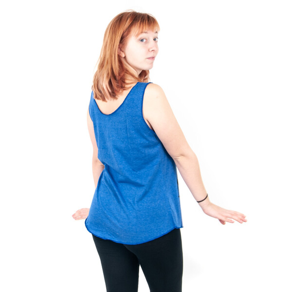 With the cheerful Hand of Buddha motif on the tank top, you're guaranteed to light up the day not only for yourself. And it doesn't matter if you're going to do the cobra pose and sun salutation or stroll along the beach.