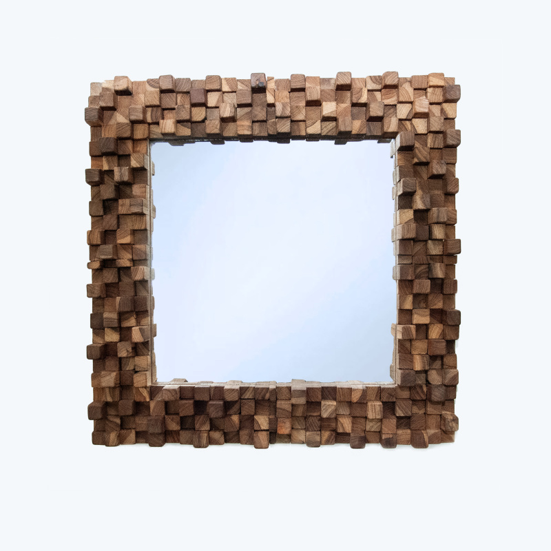 Admire not only yourself when you look in the mirror. The exotic wood-framed Square Block Puzzle Mirror is also a very tasteful interior decoration. Moreover, it will bring a warm touch to your home thanks to its distinctive wooden frame.