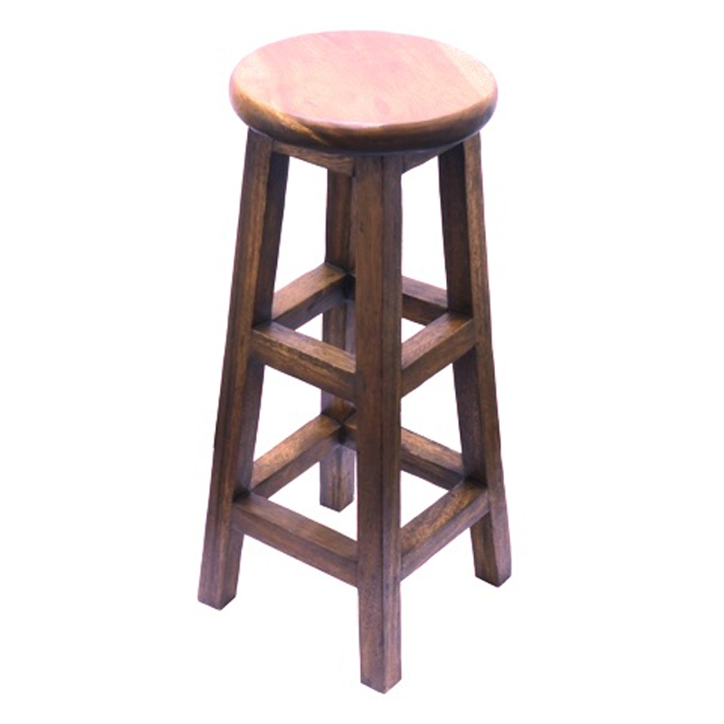 Round bar stool with double footrest. The stool is handmade from exotic wood and treated with natural oil. The furniture is made in Thailand by local family carvers who have many years of history. The products are made for export purposes, so they meet strict quality criteria in terms of function, technical and design.
