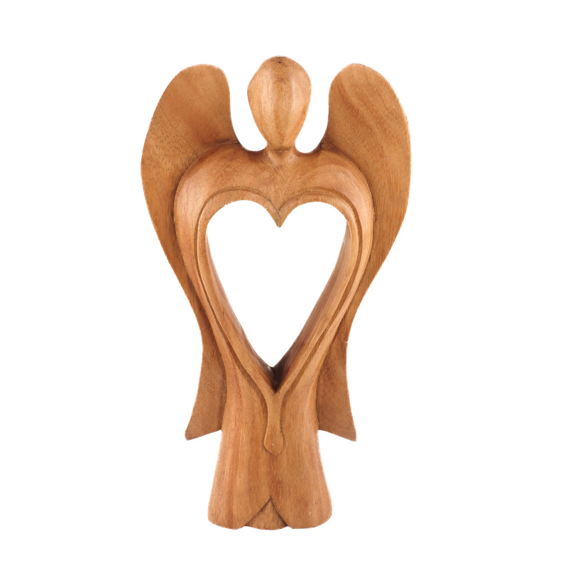 Product description Wooden Statuette Angel Heart 30 cm Natural
