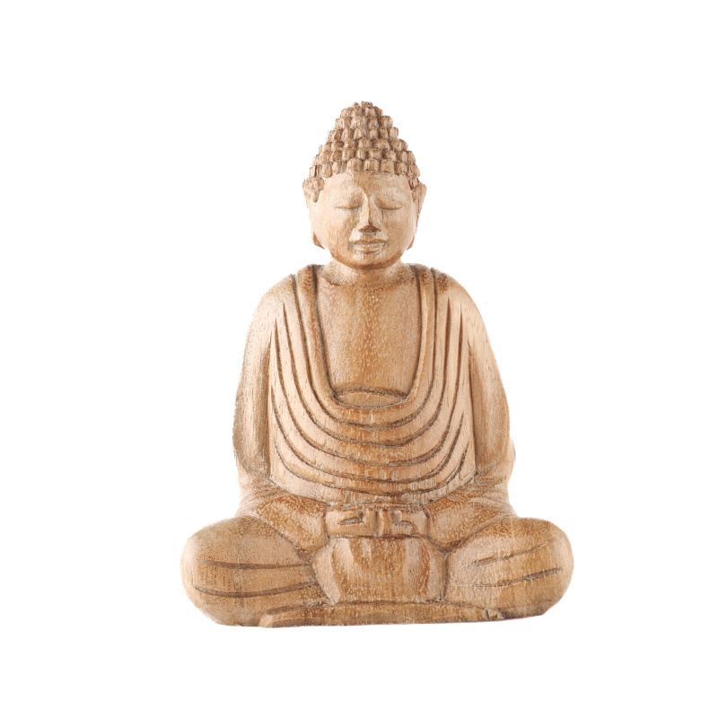 Wooden Buddha statues hold a special place in Buddhist art. Carved from the bounty of nature, they exude warmth and calmness. The form of the statues, the posture and hand gestures, known as mudras, have specific meanings. The seated position with folded legs (padmasana) is a basic meditation posture and expresses inner peace and enlightenment. The material itself - wood - also has symbolic significance. In many cultures it represents growth, transformation and connection with nature. Natural imperfections give each statue character and personality.