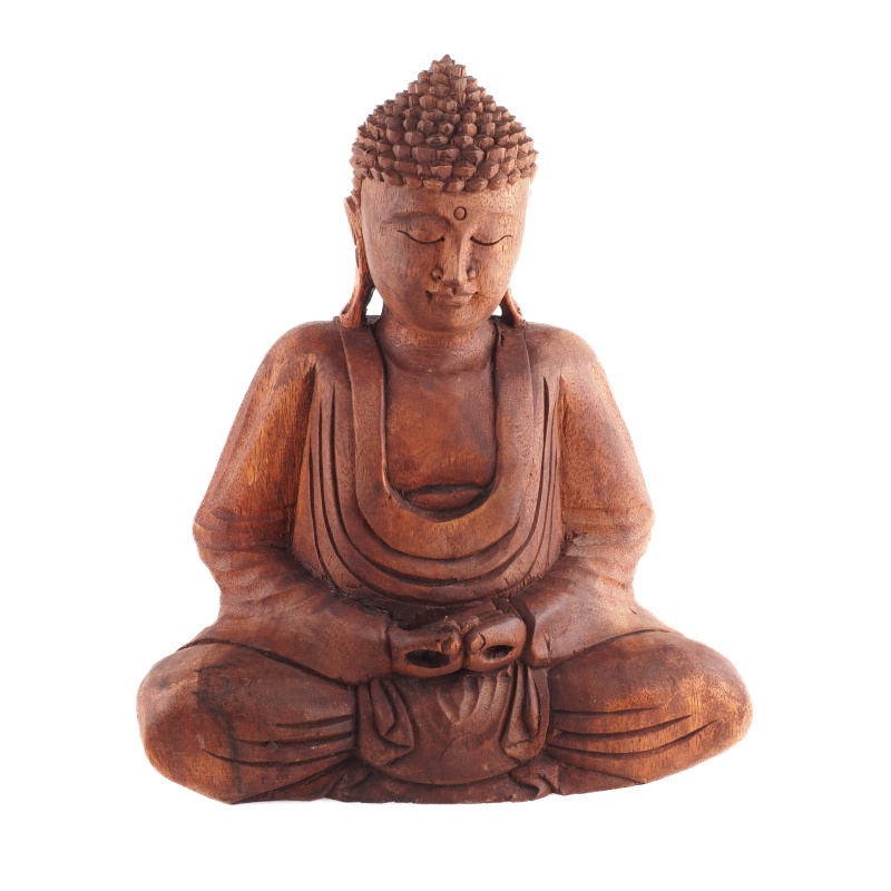 Wooden Buddha statues hold a special place in Buddhist art. Carved from the bounty of nature, they exude warmth and calmness. The form of the statues, the posture and hand gestures, known as mudras, have specific meanings. The seated position with folded legs (padmasana) is a basic meditation posture and expresses inner peace and enlightenment. The material itself - wood - also has symbolic significance. In many cultures it represents growth, transformation and connection with nature. Natural imperfections give each statue character and personality.