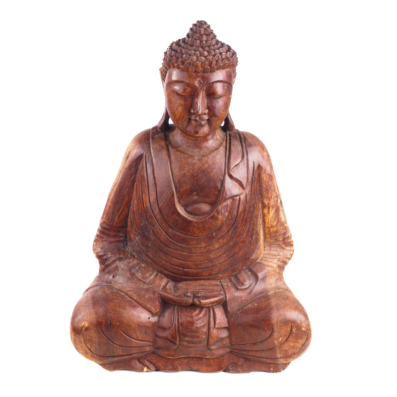 Wooden Buddha statues hold a special place in Buddhist art. Carved from the bounty of nature, they exude warmth and calmness. The form of the statues, the posture and hand gestures, known as mudras, have specific meanings. The seated position with folded legs (padmasana) is a basic meditation posture and expresses inner peace and enlightenment. The material itself - wood - also has symbolic significance. In many cultures it represents growth, transformation and connection with nature. Natural imperfections give each statue character and personality.