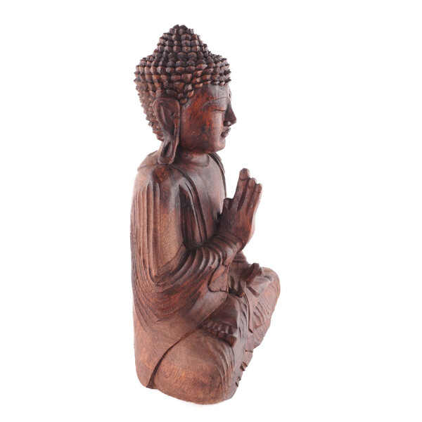 Wooden Buddha statues hold a special place in Buddhist art. Carved from the bounty of nature, they exude warmth and calmness. The form of the statues, the posture and hand gestures, known as mudras, have specific meanings. The seated position with folded legs (padmasana) is a basic meditation posture and expresses inner peace and enlightenment. The material itself - wood - also has symbolic significance. In many cultures it represents growth, transformation and connection with nature. Natural imperfections give each statue character and personality.