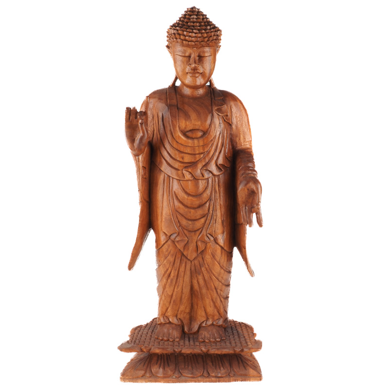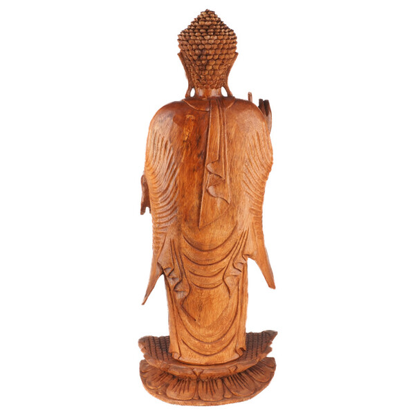 Wooden Buddha statues hold a special place in Buddhist art. Carved from the bounty of nature, they exude warmth and calmness. The form of the statues, the posture and hand gestures, known as mudras, have specific meanings. The seated position with folded legs (padmasana) is a basic meditation posture and expresses inner peace and enlightenment. The material itself - wood - also has symbolic significance. In many cultures it represents growth, transformation and connection with nature. Natural imperfections give each statue character and personality.