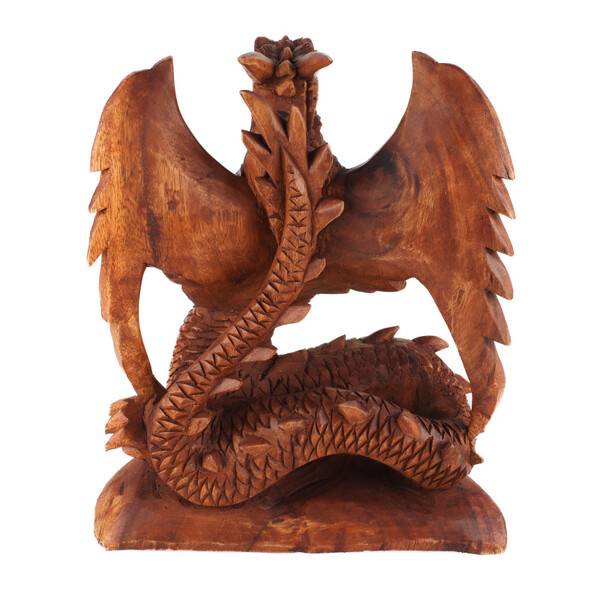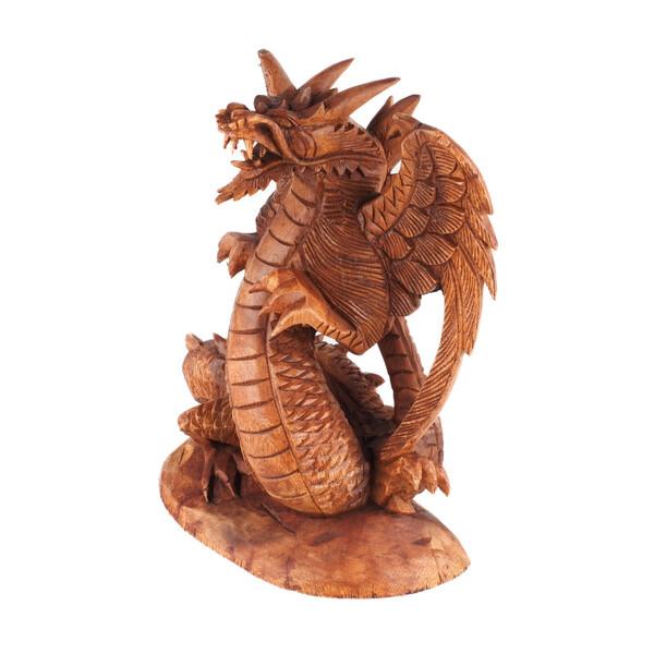 The dragon is considered a sacred animal in many traditional cultures. According to legend, the dragon protected the island of Bali from invaders and danger. The motif of the dragon conveys strength, courage, prosperity and good fortune. It is believed that the dragon is the guardian of the gods and devotedly protects the sanctity of the home. The material itself - wood - also has symbolic significance. In many cultures, it represents growth, transformation and connection with nature. Natural imperfections give each statue character and personality.