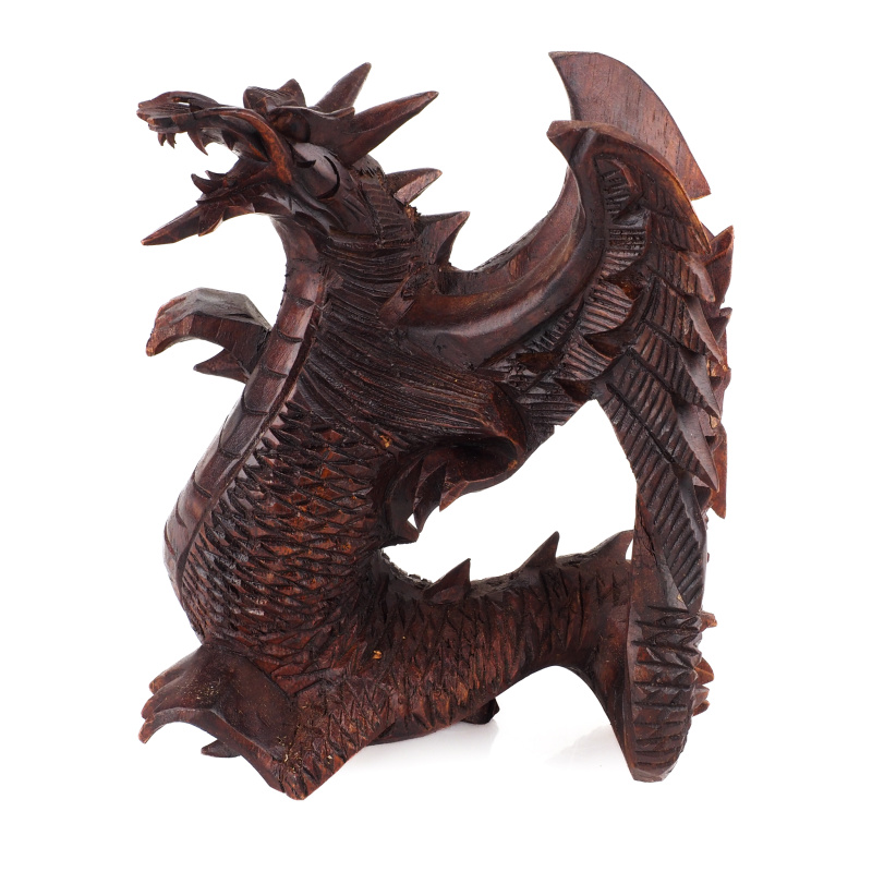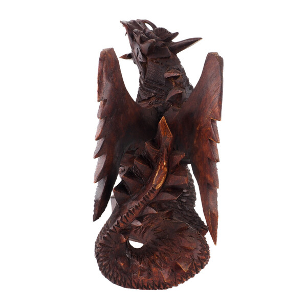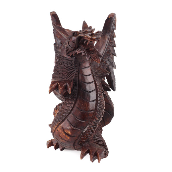 Product description Wooden Statuette Dragon Wings Folded Back 20 cm Brown