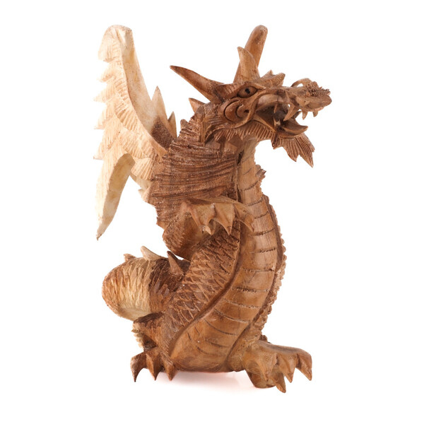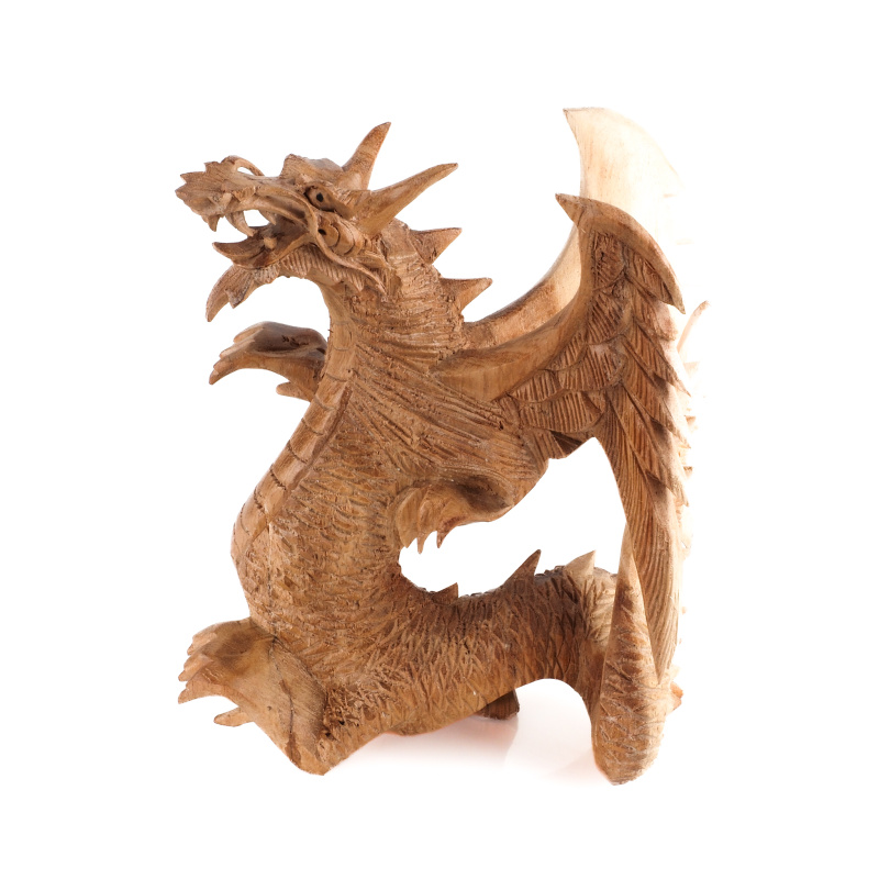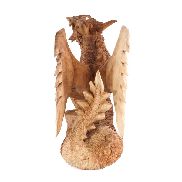 Product description Wooden Statuette Dragon Wings Folded Back 20 cm Natural