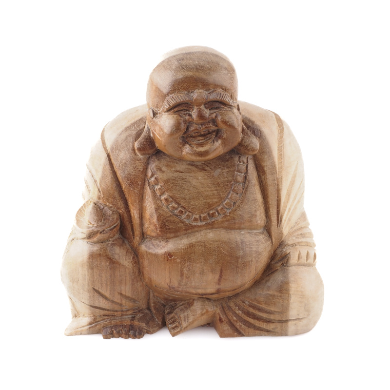 Product description Wooden Statuette Happy Buddha 15 cm Natural