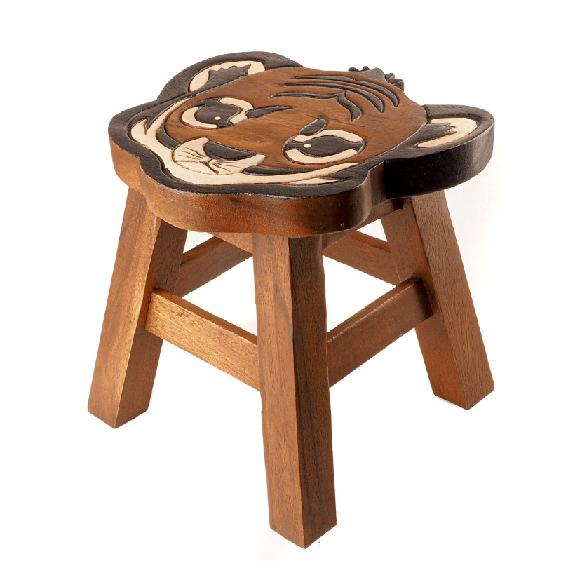 Hand carved exotic wood stool Decor Baby Tiger