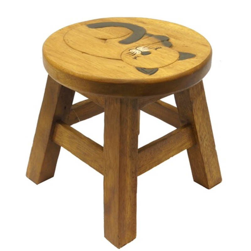 Hand carved exotic wood stool Decor Sleeping Cat