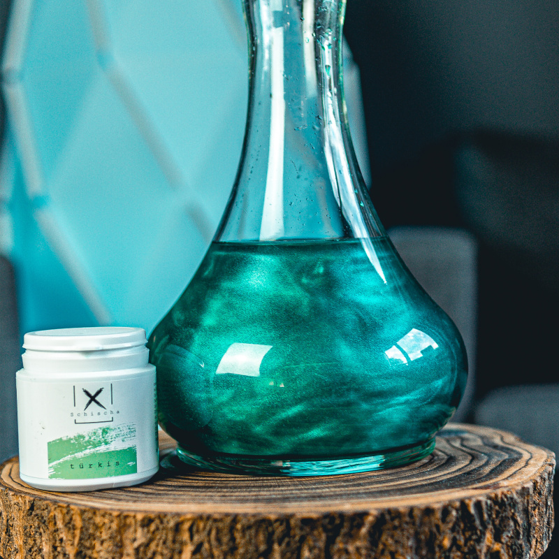 XSchischa Colouring Powder is a health-safe dye. Simply add a quarter teaspoon of powder to give the water in the vase a brilliant shade of colour, and you can enjoy a charming spectacle. In addition, the colorant's composition creates a sparkling visual effect reminiscent of waves crashing on the surface of the sea.